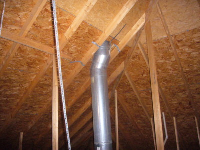 inspection photo you can see a metal chimney pipe venting the prefab metal
